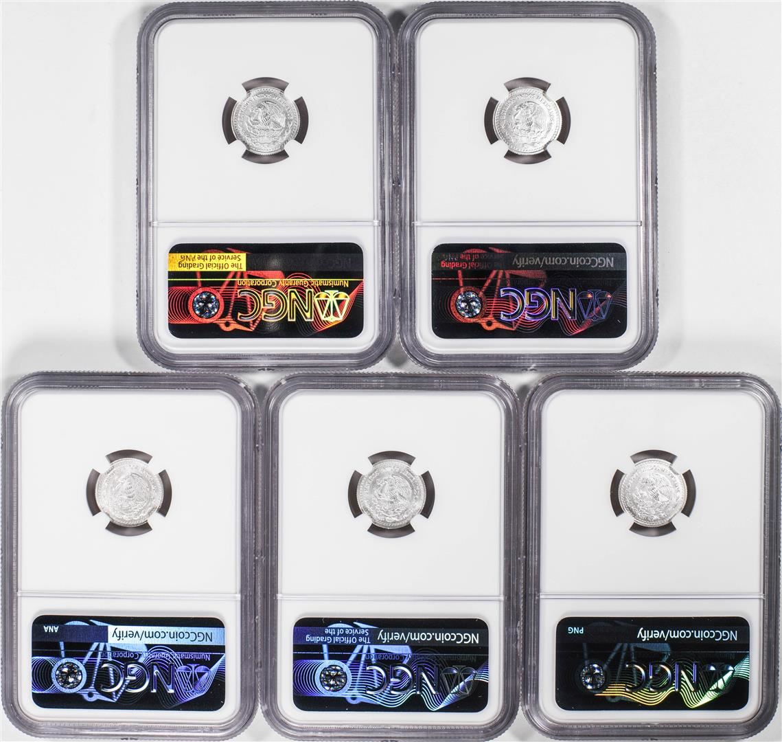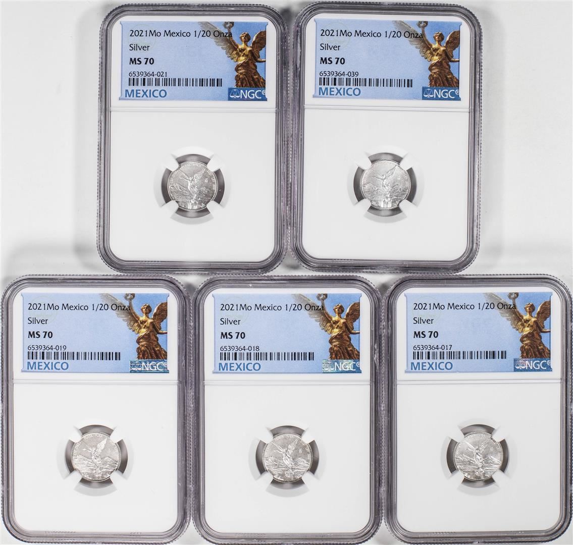 Lot of (5) 2021-Mo Mexico 1/20 oz Silver Libertad Coins NGC MS70