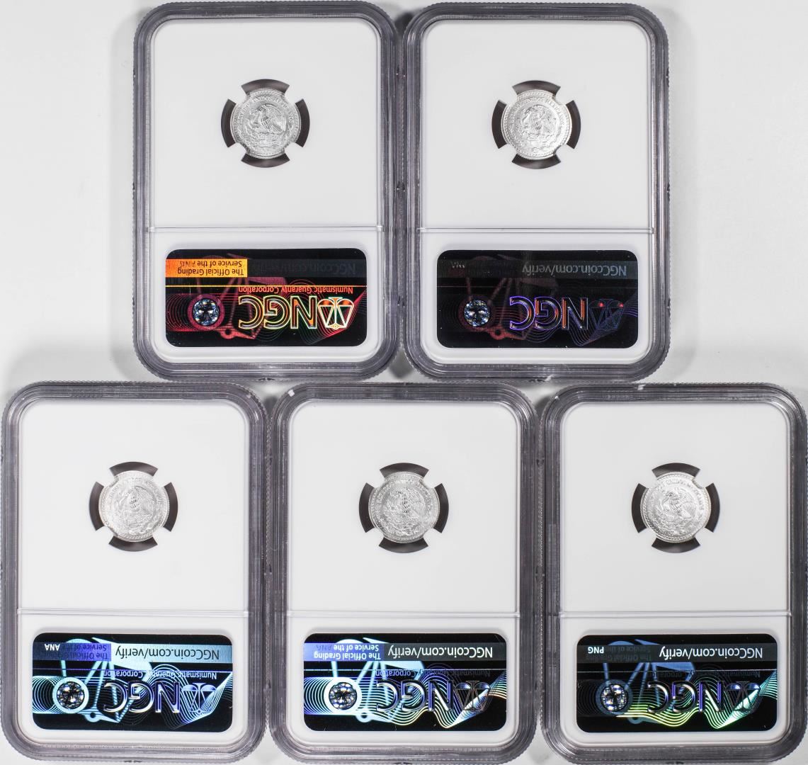 Lot of (5) 2021-Mo Mexico 1/20 oz Silver Libertad Coins NGC MS70