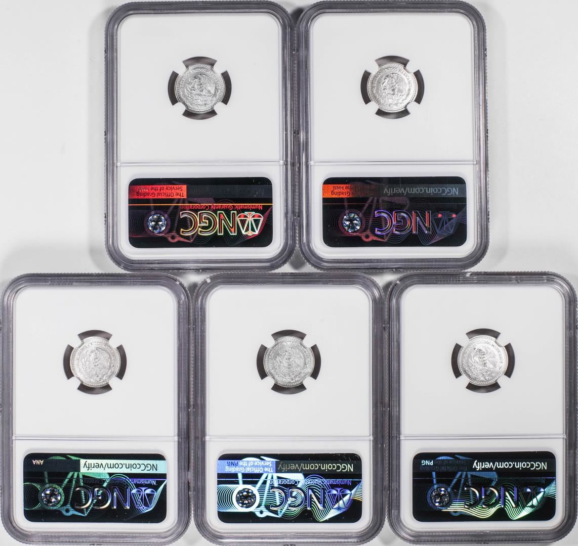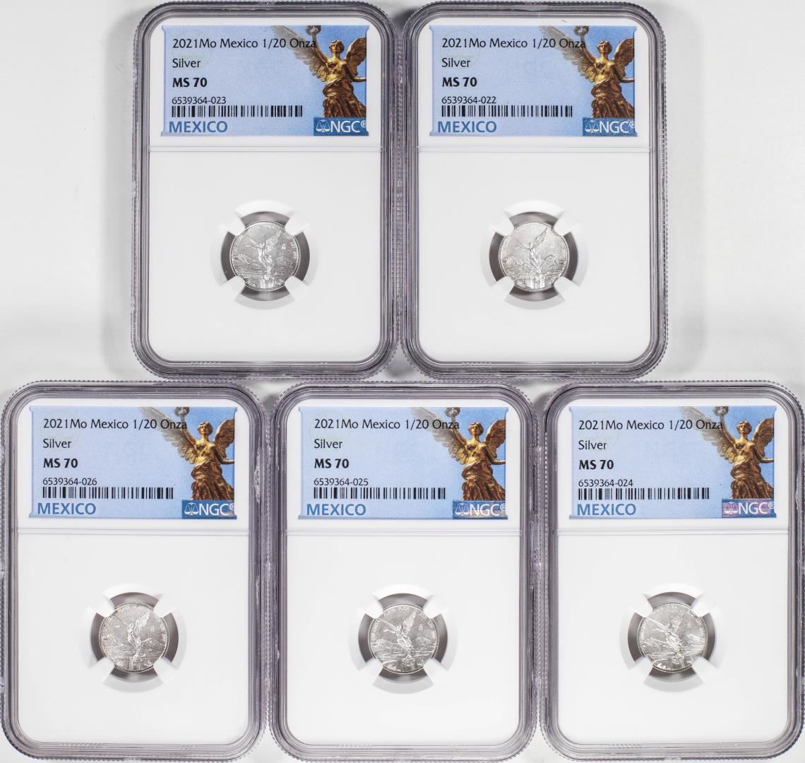 Lot of (5) 2021-Mo Mexico 1/20 oz Silver Libertad Coins NGC MS70