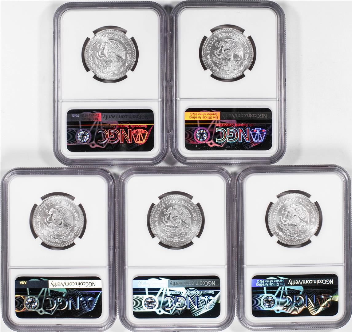 Lot of (5) 2021-Mo Mexico 1/4 oz Silver Libertad Coins NGC MS70