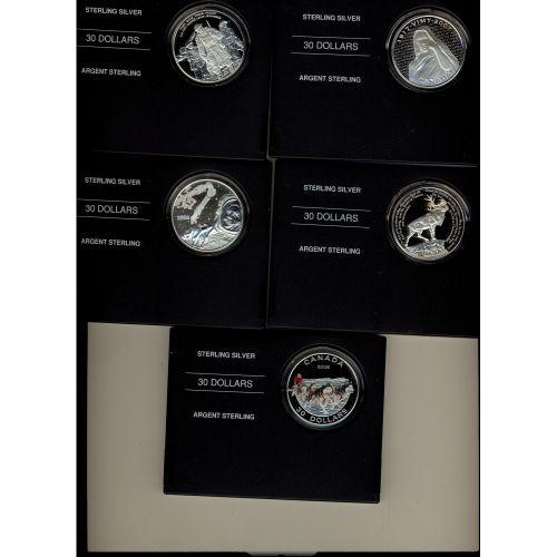 Lot of 5 $30 RCM: 2006 Canadarm, 2006 Dog Sled Team, 2006 National War Memorial, 2006 Beaumont-Hamel Newfoundland Memorial, 2007 Canadian National Vimy Memorial,