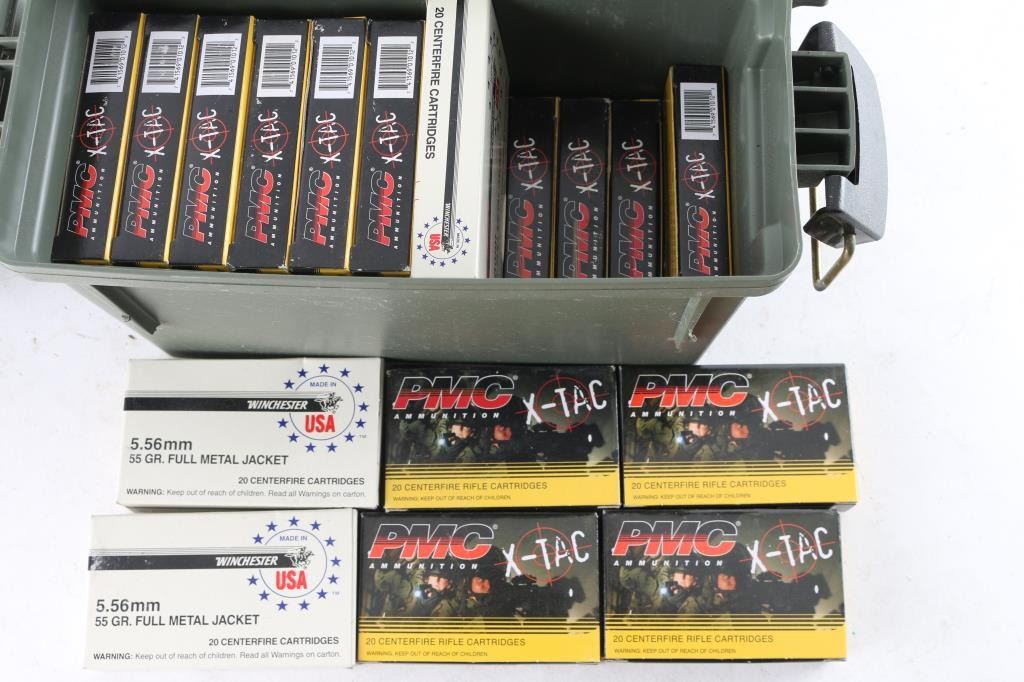 Approx. 480 rounds of new 5.56 ammunition, from PMC & Winchester, new in factory boxes. All in Plastic ammo can.