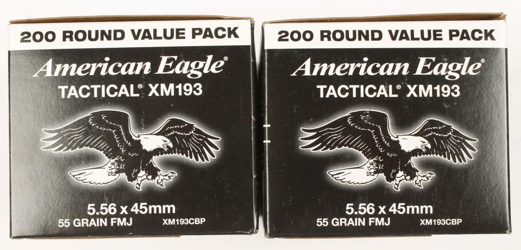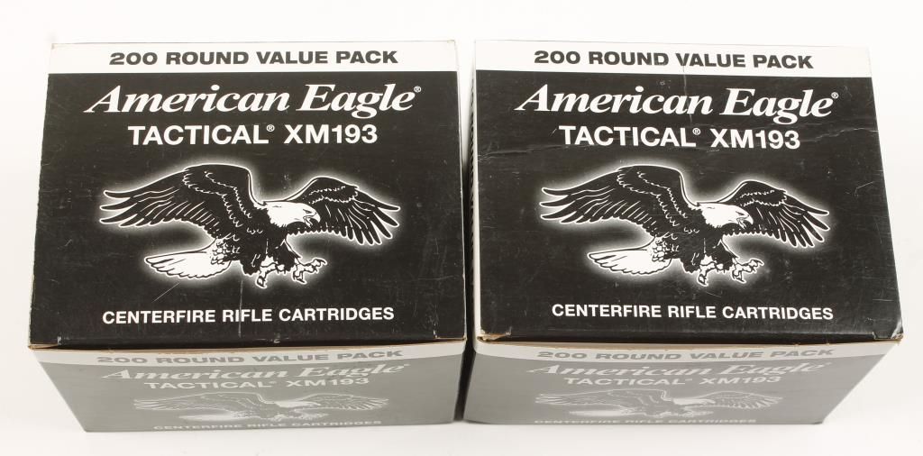 Two boxes (200 rounds/box) of American Eagle Tactical XM193 ammo. 400 rounds in total.