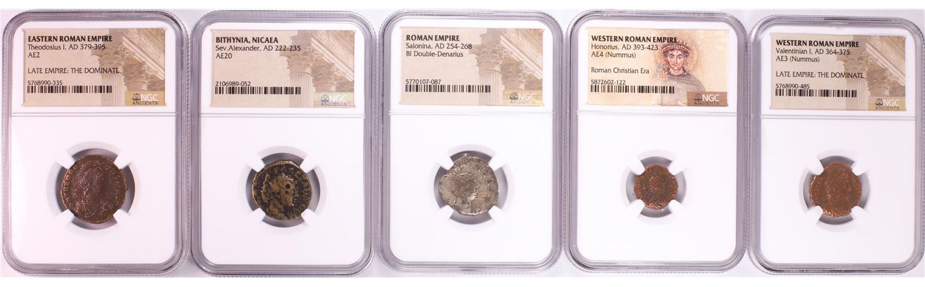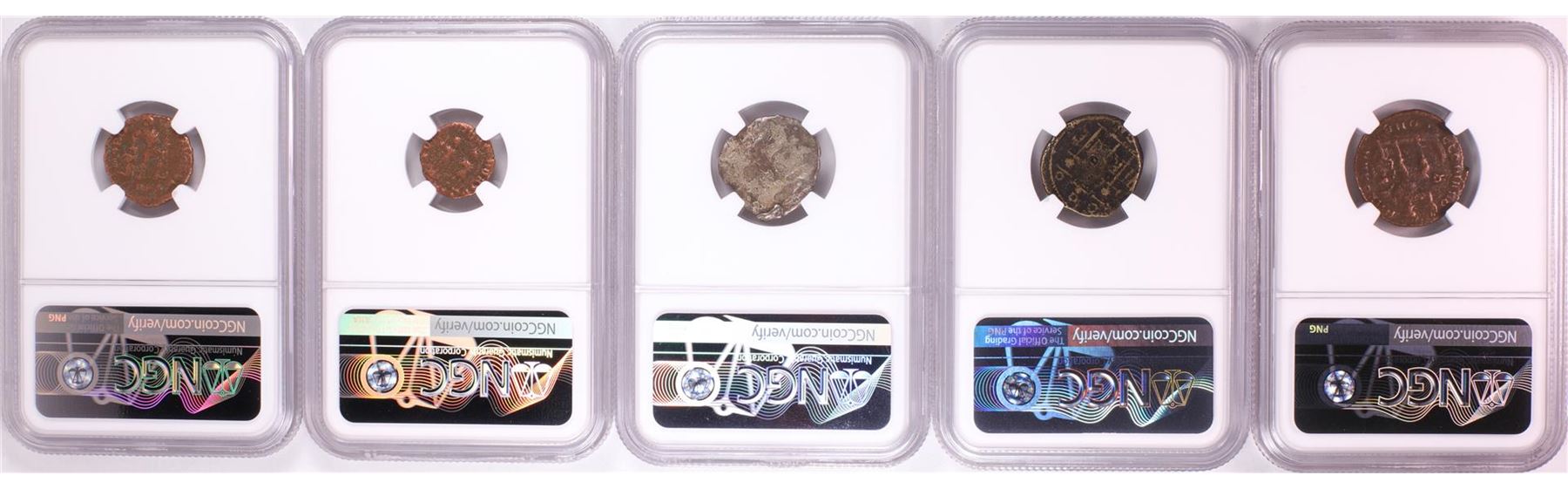 One Lot of (5) Ancient Roman Empire Coins NGC Certified. NGC Certified.