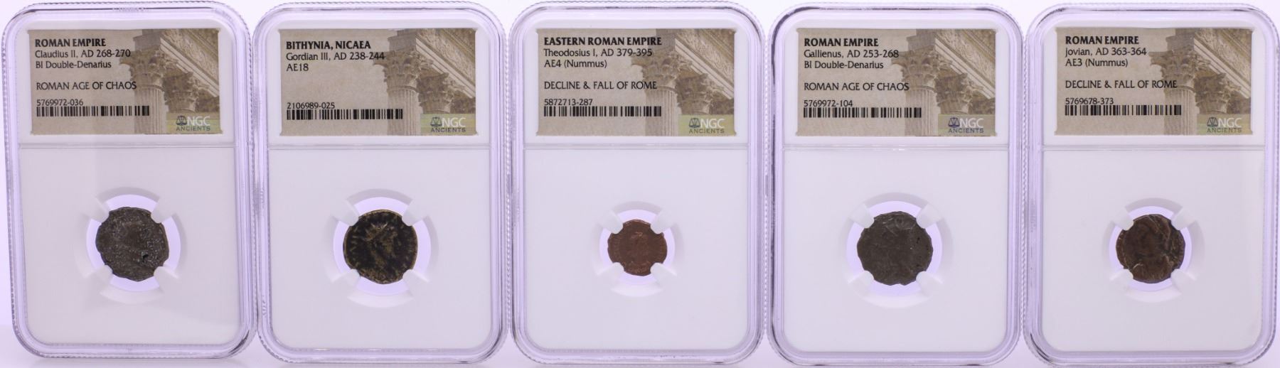 One Lot of (5) Ancient Roman Empire Coins NGC Certified.