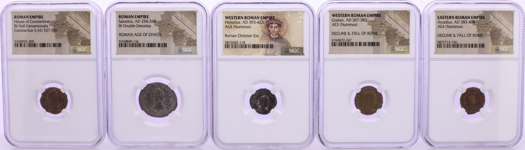 One Lot of (5) Ancient Roman Empire Coins NGC Certified.