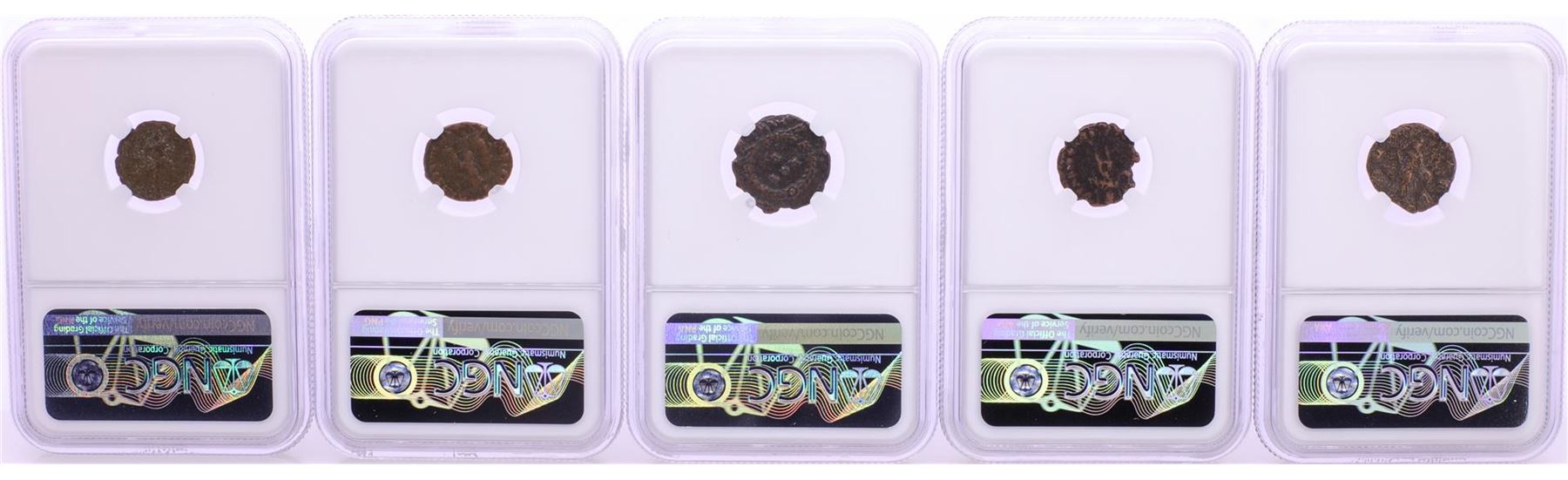One Lot of (5) Ancient Roman Empire Coins NGC Certified. NGC Certified.