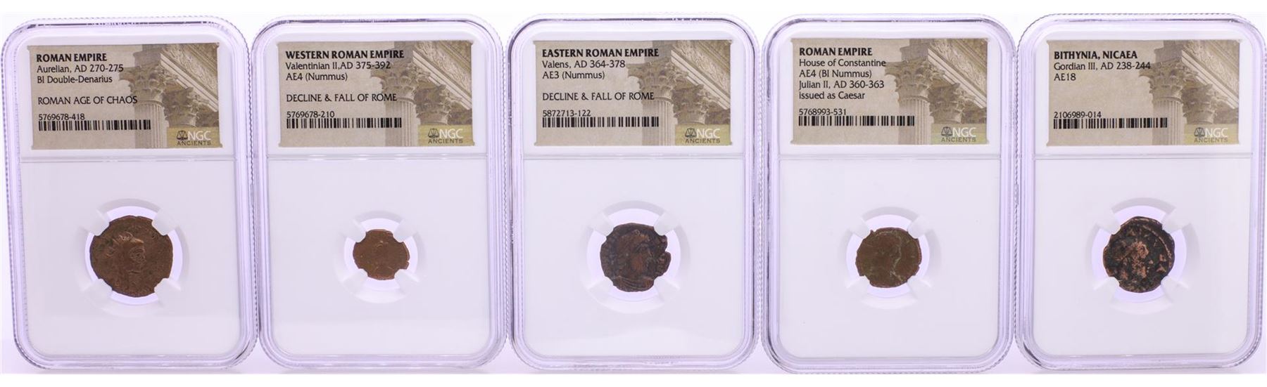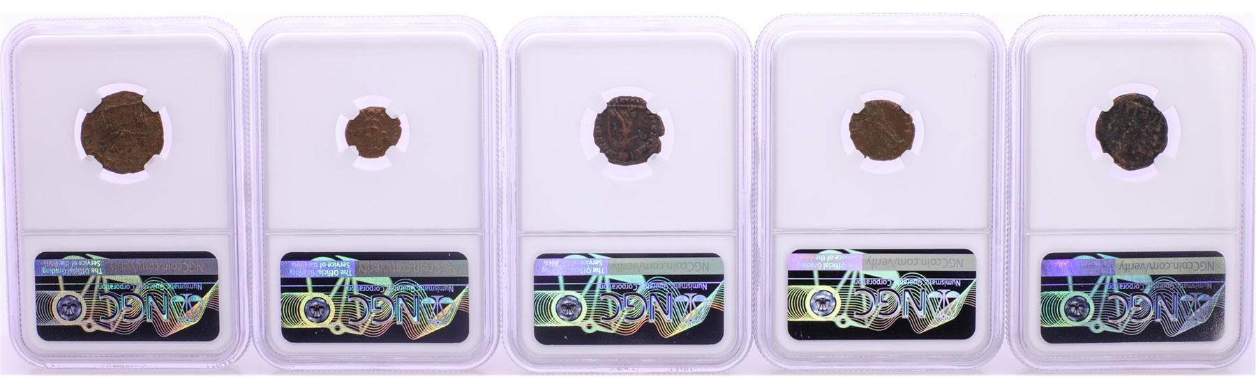 One Lot of (5) Ancient Roman Empire Coins NGC Certified. NGC Certified.