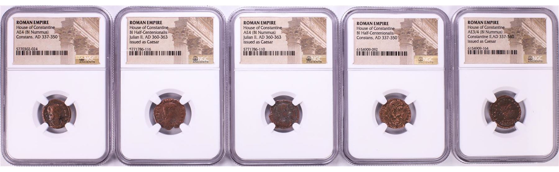 One Lot of (5) Ancient Roman Empire Coins NGC Certified. NGC Certified.