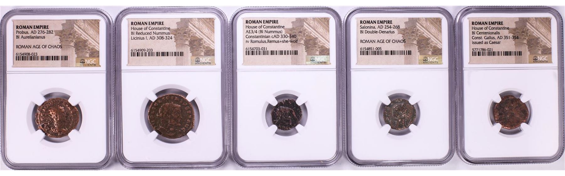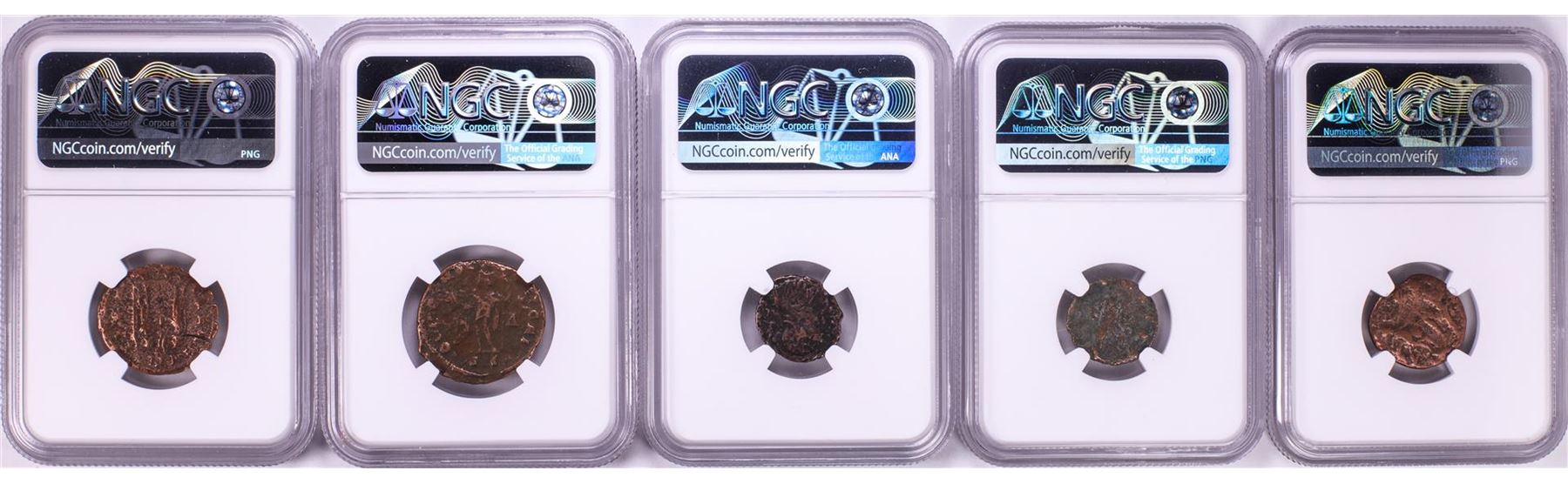 One Lot of (5) Ancient Roman Empire Coins NGC Certified. NGC Certified.