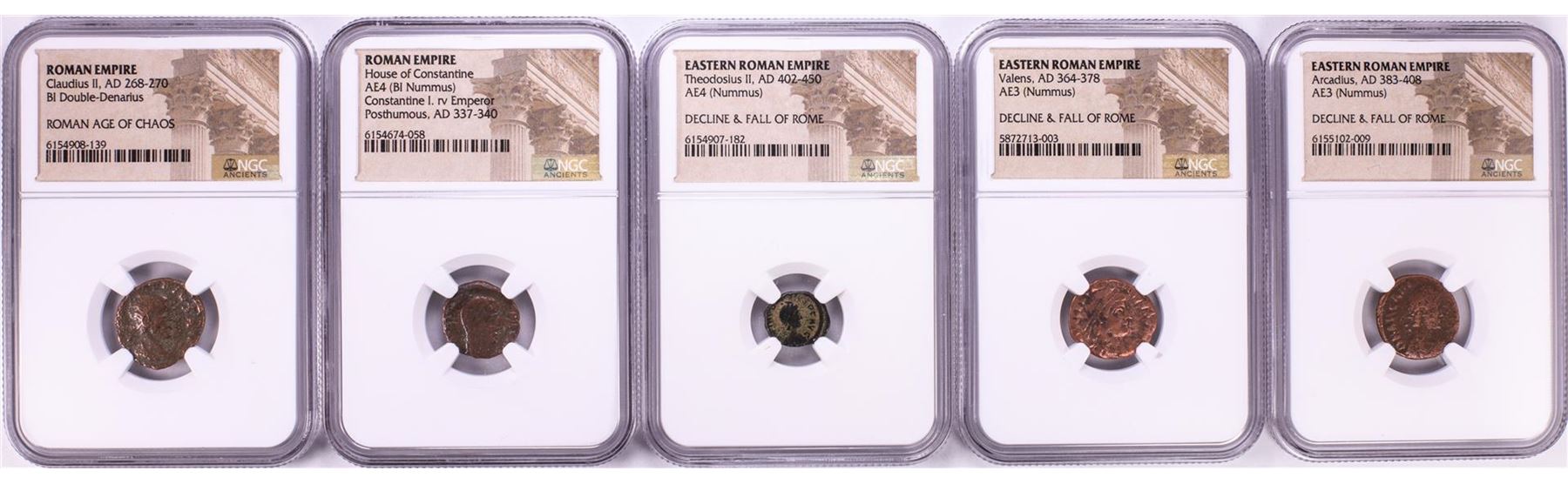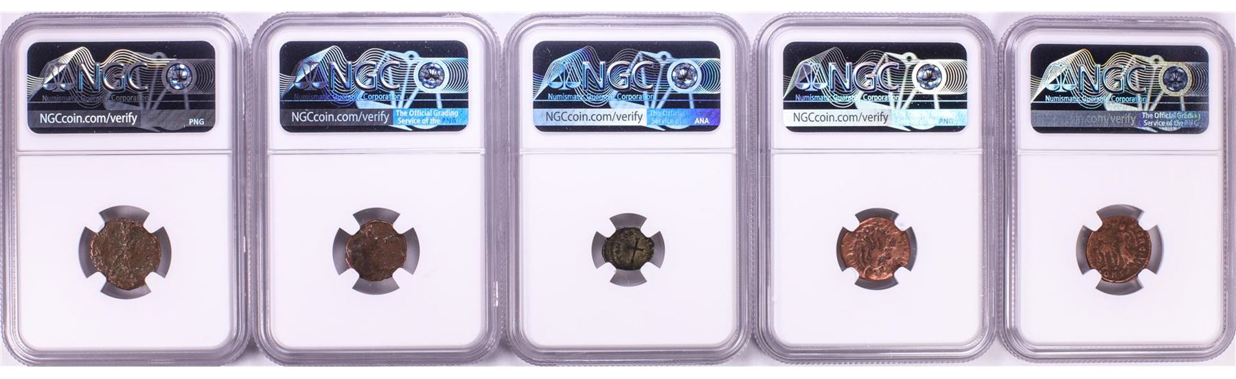 One Lot of (5) Ancient Roman Empire Coins NGC Certified. NGC Certified.