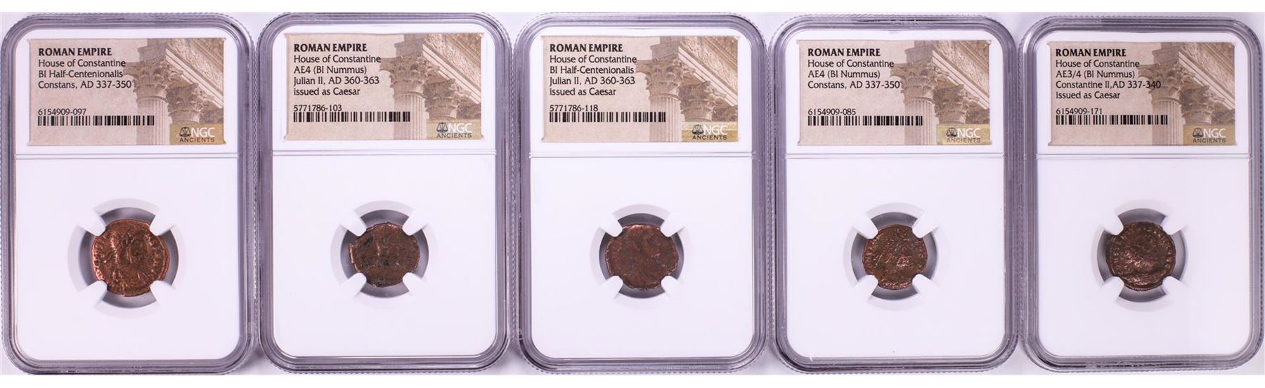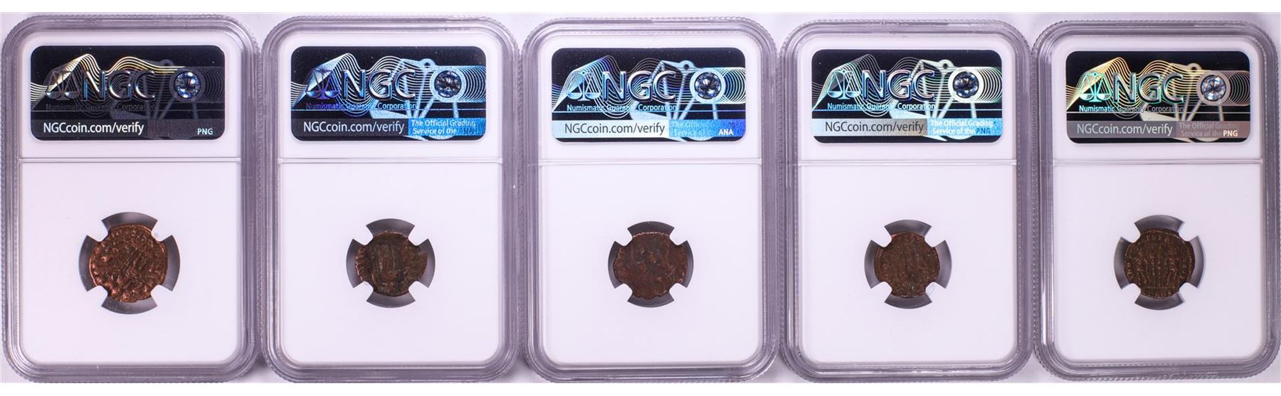 One Lot of (5) Ancient Roman Empire Coins NGC Certified. NGC Certified.