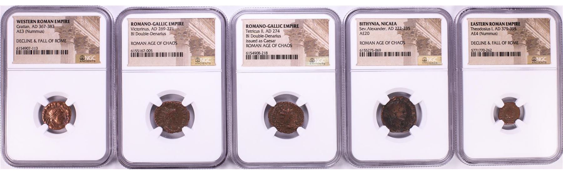One Lot of (5) Ancient Roman Empire Coins NGC Certified. NGC Certified.