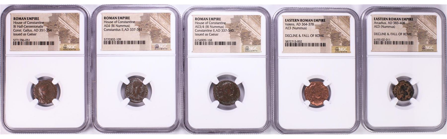 One Lot of (5) Ancient Roman Empire Coins NGC Certified. NGC Certified.