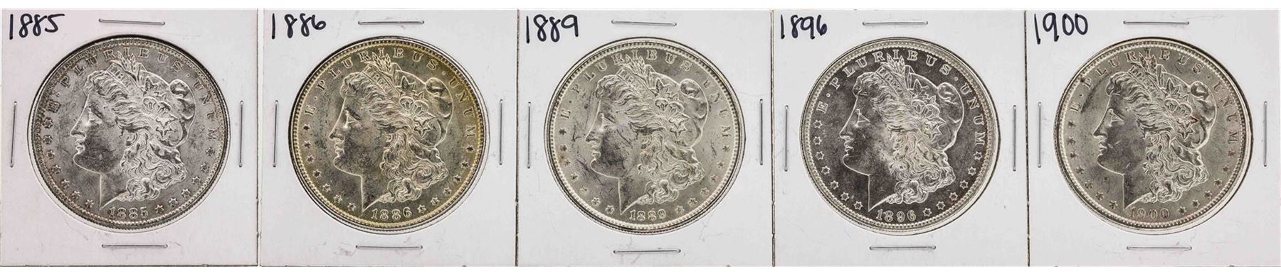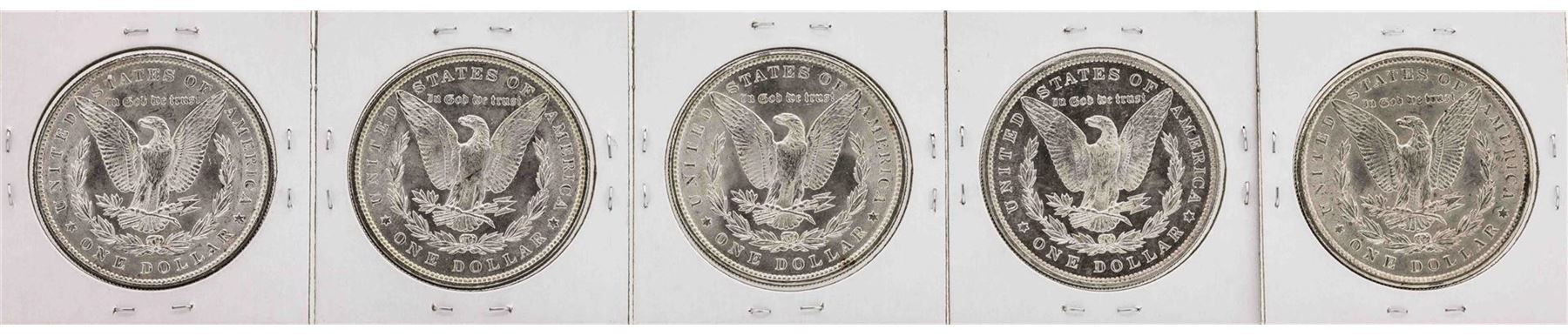 One Lot of (5) Assorted Date $1 Morgan Silver Dollar Coins.