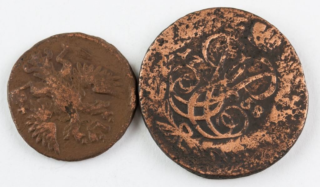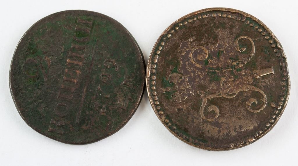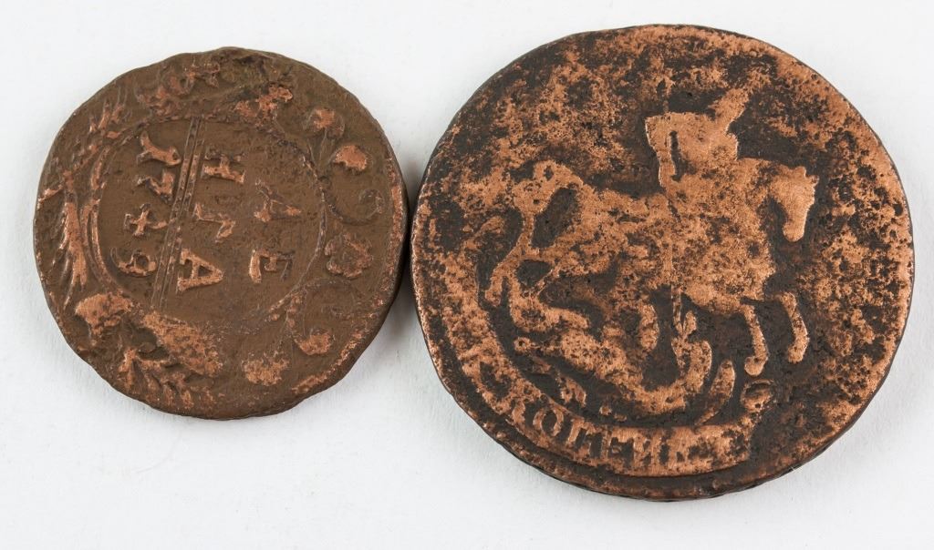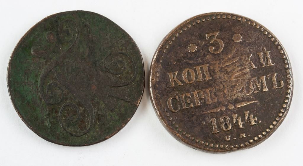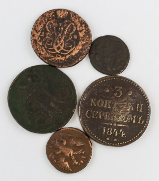 Lot of 5 assorted coins. Of different denominations and eras. One clearly stamped "1844". Shows signs of wear and tear.