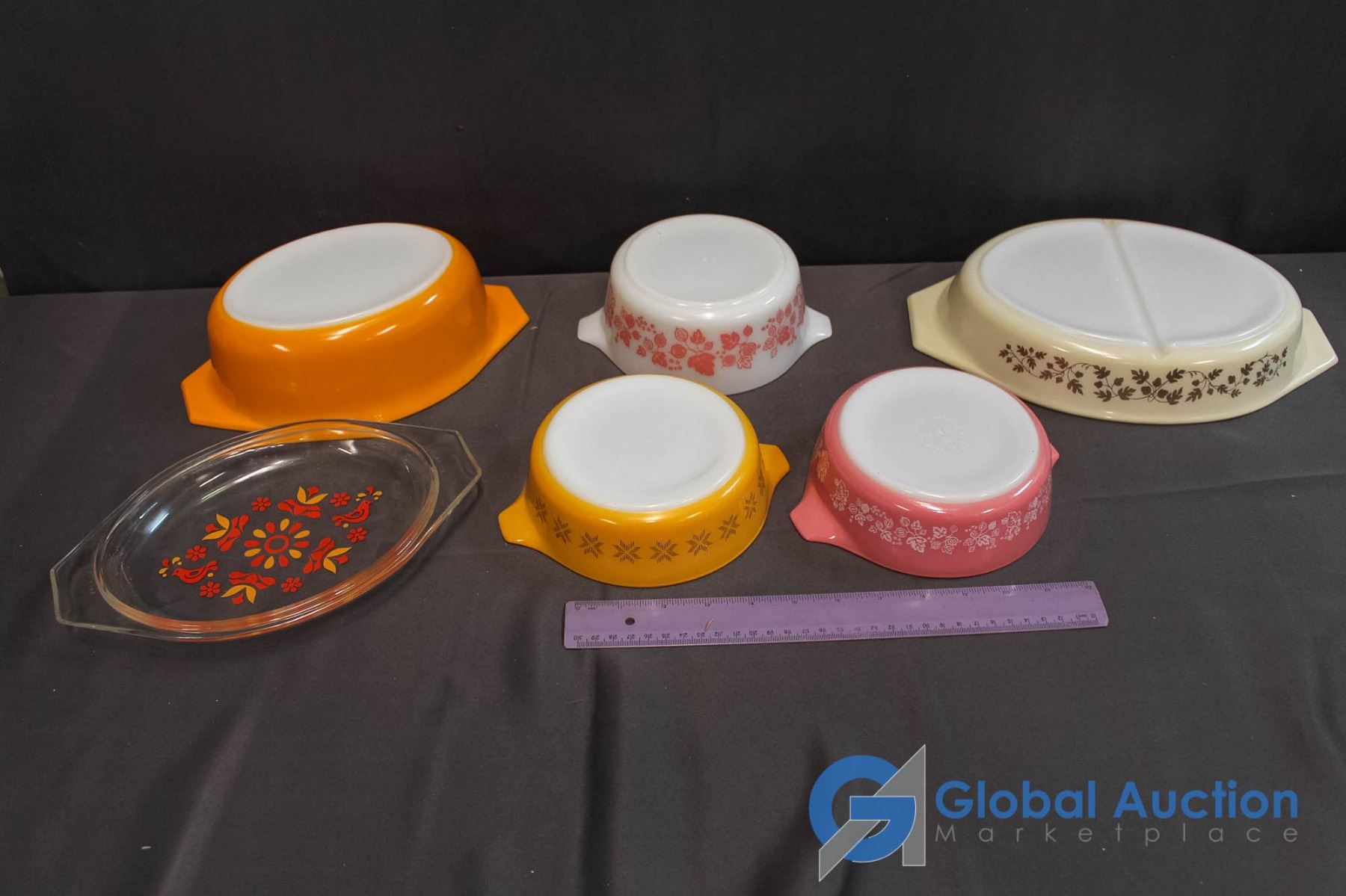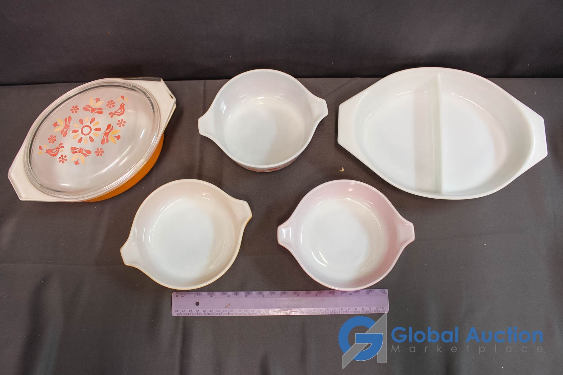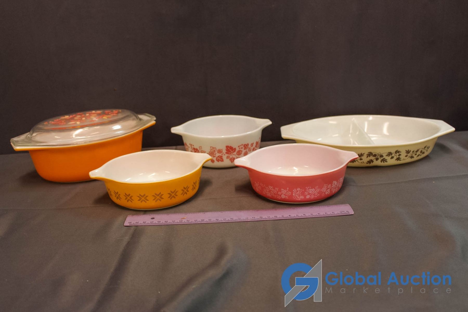 Lot of 5 Assorted Vintage Pyrex Dishware Pieces - Multiple Patterns