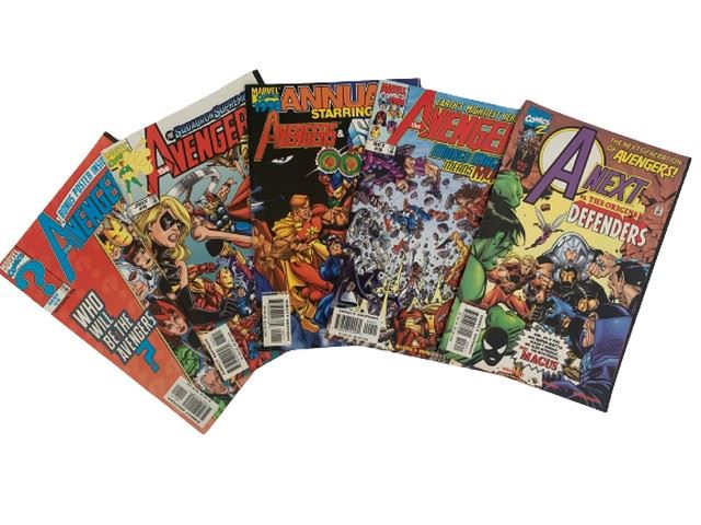 Lot of 5 Avengers comics including No. 4 from May, 1997, #6 from July which is the Squadrons Supreme vs The Avengers vol 3 #6 July 1998. 1998 Annual starring Avengers and Squadrons Supreme, Earth's Mightiest Heroes The Avengers Moses Magnum Means Murder! #9, October 1998. Avengers Next Versus the Original Defenders #3, December 1998. All in great condition. From the collection of a former Marvel employee.