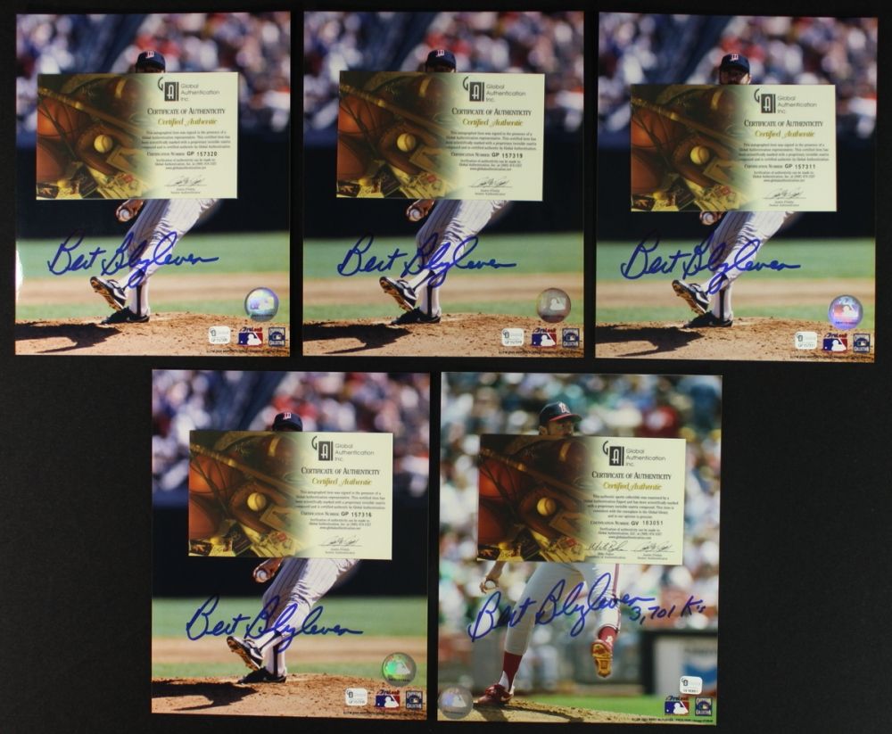 This lot includes all 5 signed photos shown below. Each photo is hand-signed by Bert Blyleven (HOF). The lot includes 4 Twins photos and 1 Angels photo (inscribed "3,701 K's"). Each autograph includes a Global Authentics "Witness" COA for authenticity purposes. The signing of the photos was witnessed by Global Authentics.
