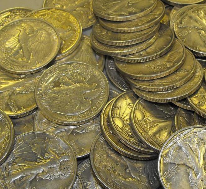 A lot fo 5 Walking liberty halves- Considered America’s most beautiful silver coin, the Liberty Walking half dollar was minted from 1916-1947. This 90% silver coin shows Liberty striding toward the dawn of a new day. An eagle on a crag is on the reverse.