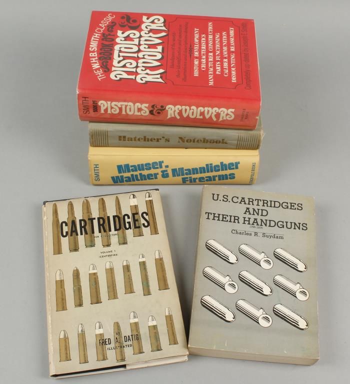 "Cartridges for Collectors Volume I" by Fred A. Datig, "US Cartridges and Their Handguns", "Hatcher's Notebook", "Book of Pistols and Revolvers", and "Mauser Walther & Mannlicher Firearms".