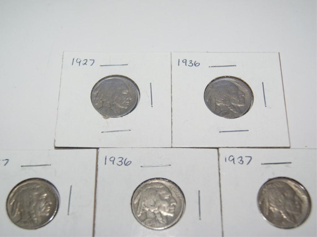 Lot of 5 Buffalo Nickels, 1927, 1936, 1936, 1937, 1937