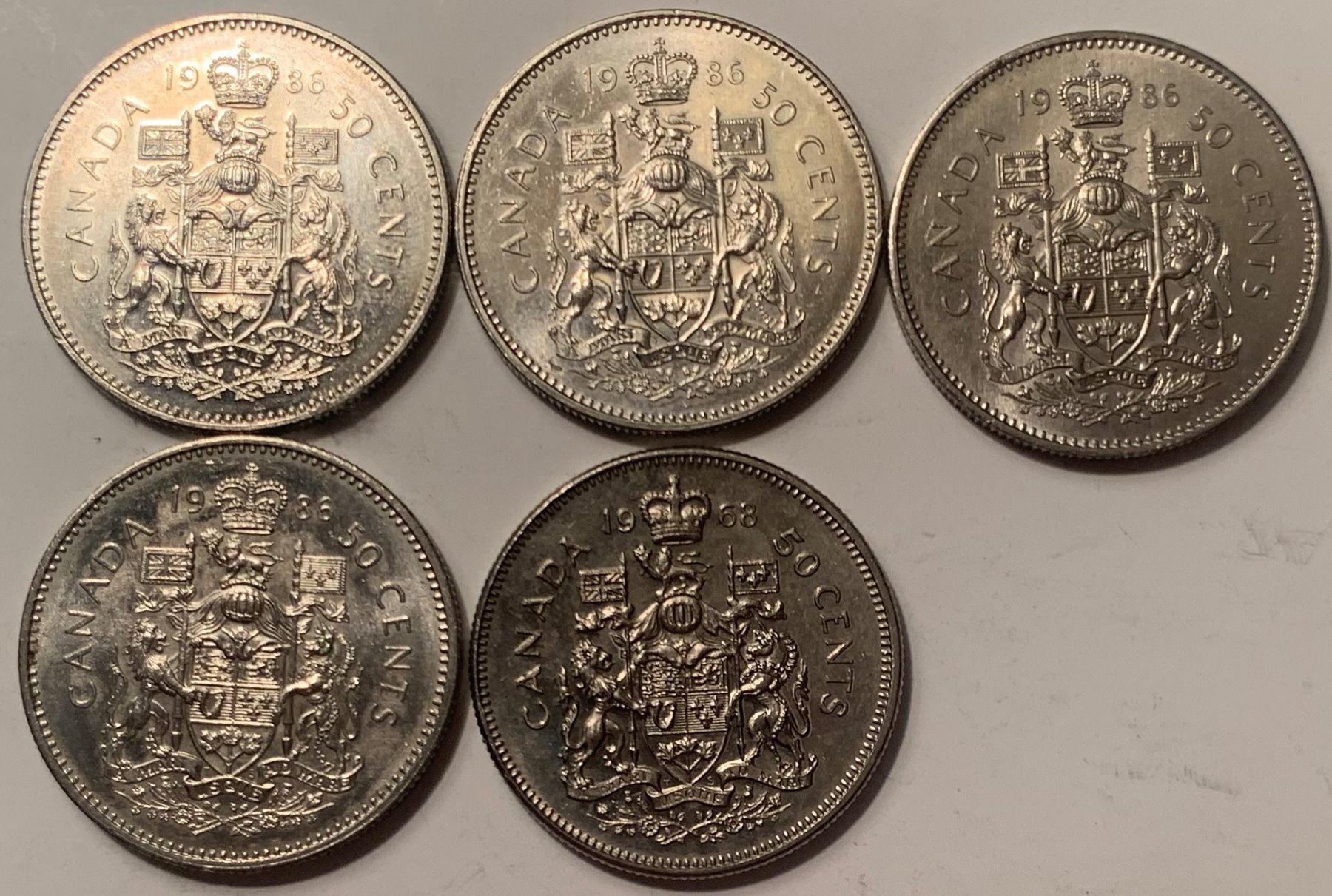 Lot of 5 Canada 50 Cent 1986 Half Dollar Bank of Canada 50 c