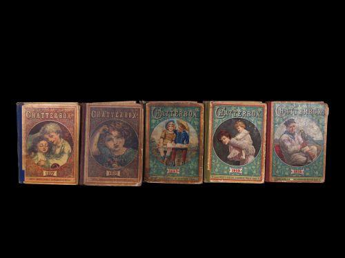 Lot of 5 "Chatterbox" Books, Boston, Mass Heavily Illustrated with hundreds of choice Illustrations Dated 1877, 1880, 1893, 1905 & 1910