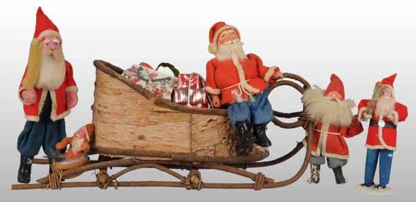 Description Japanese. Composition faces. Also includes a wooden sleigh. Condition (Excellent). Size Sleigh: 11" L.