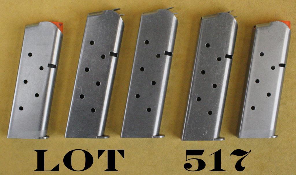 Lot of 5 Colt magazines, .45 caliber, 8 round for 1911-A1 style semi-auto pistols, all in overall good condition. Est.: $50-$75.