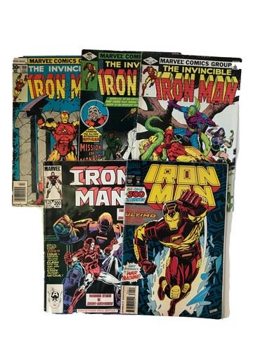 Lot of 5 comics from the Marvel collection, "Iron Man", Vol #1 300 January 1984, Vol #1 200 November 1985, Vol #1 160 July 1982, Vol #1 125 Augest 1979, Vol #1 100 July 1977. Good condition.