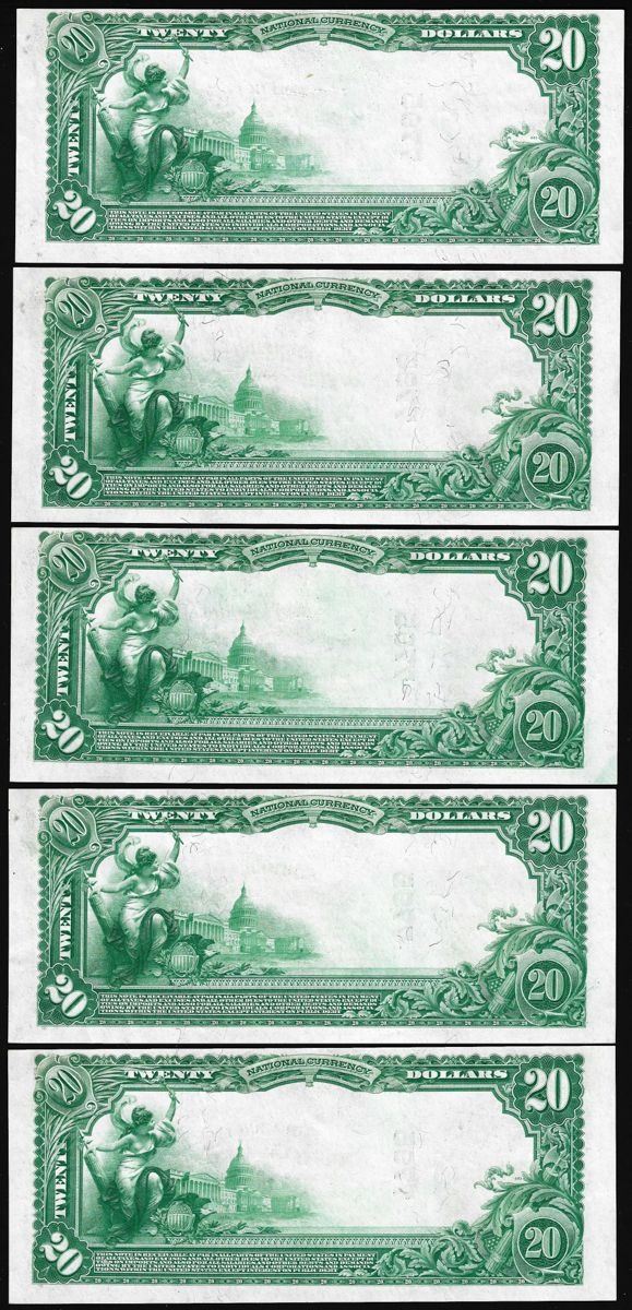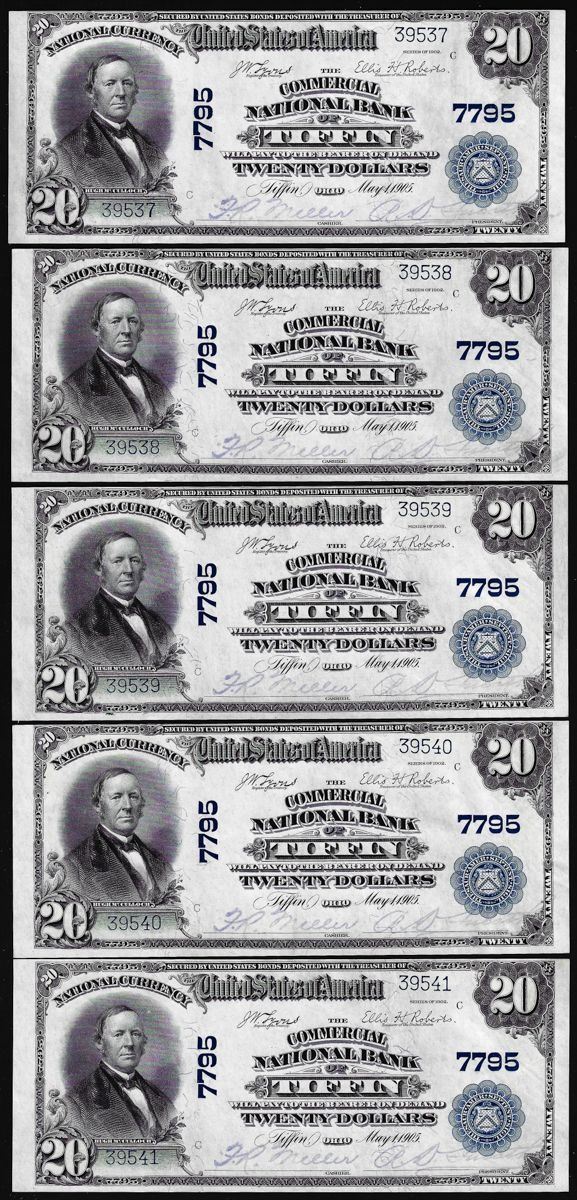 Lot of (5) Consecutive 1902PB $20 Tiffin, Ohio CH# 7795 National Currency Notes