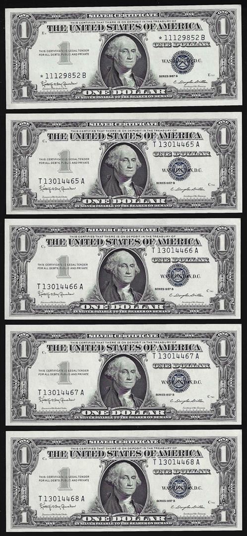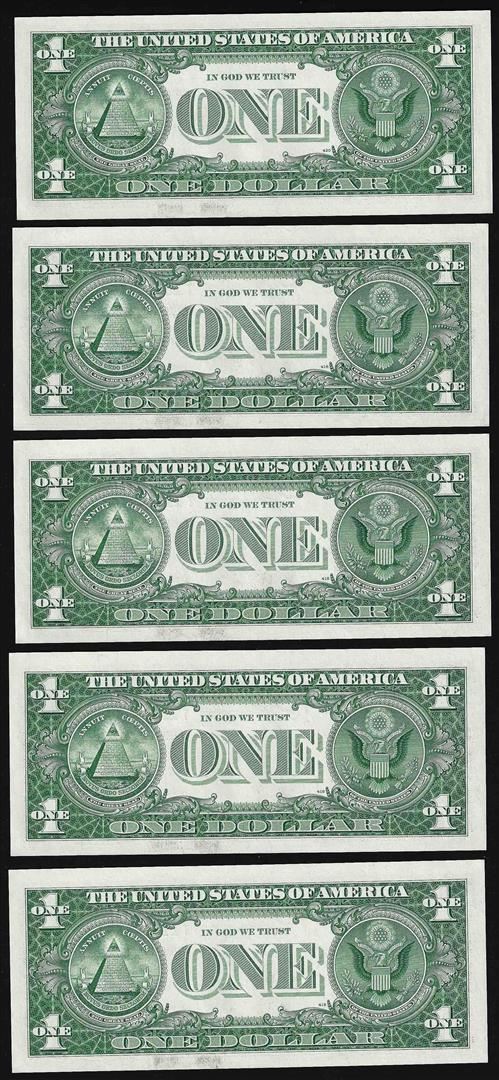 Lot of (5) Consecutive 1957 $1 Silver Certificate Notes Uncirculated