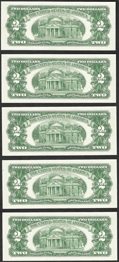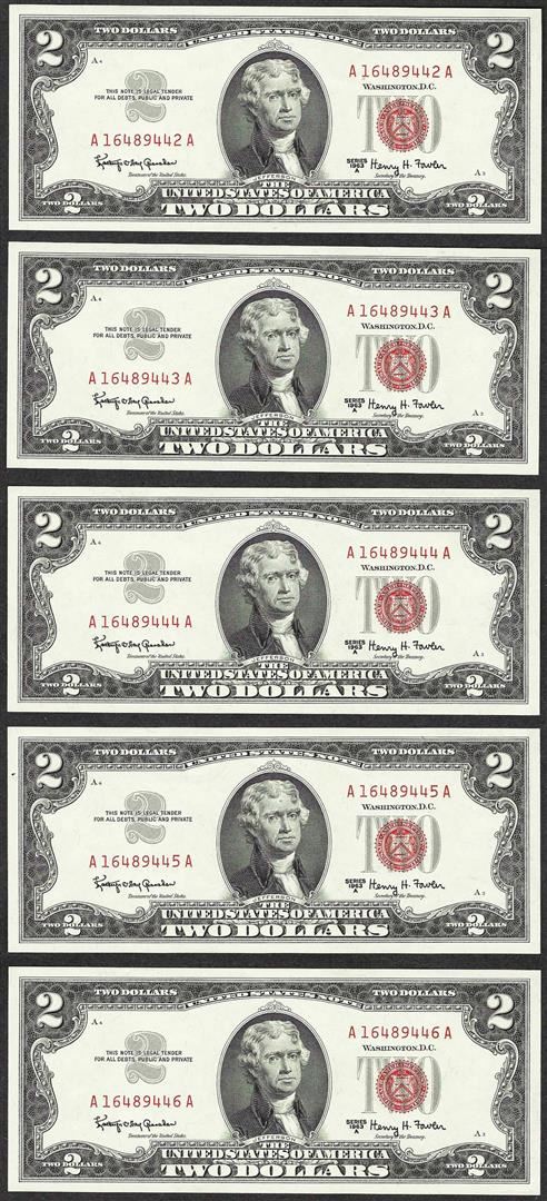 One Lot of (5) Consecutive 1963A $2 Legal Tender Notes.
