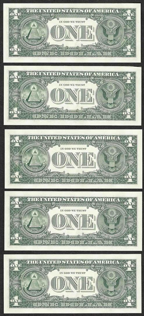 Lot of (5) Consecutive 1963B $1 Federal Reserve BARR STAR Notes