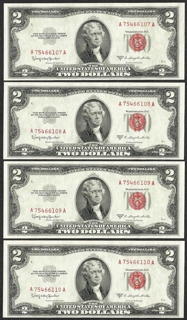 One Lot of (5) Consecutive Uncirculated 1953C $2 Legal Tender Notes.