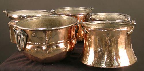 Lot of 5 Copper Pails All Old and Repolished