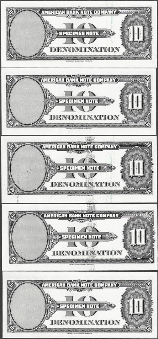 Lot of (5) Different 1929 Ten Unit American Bank Note Company Test Notes