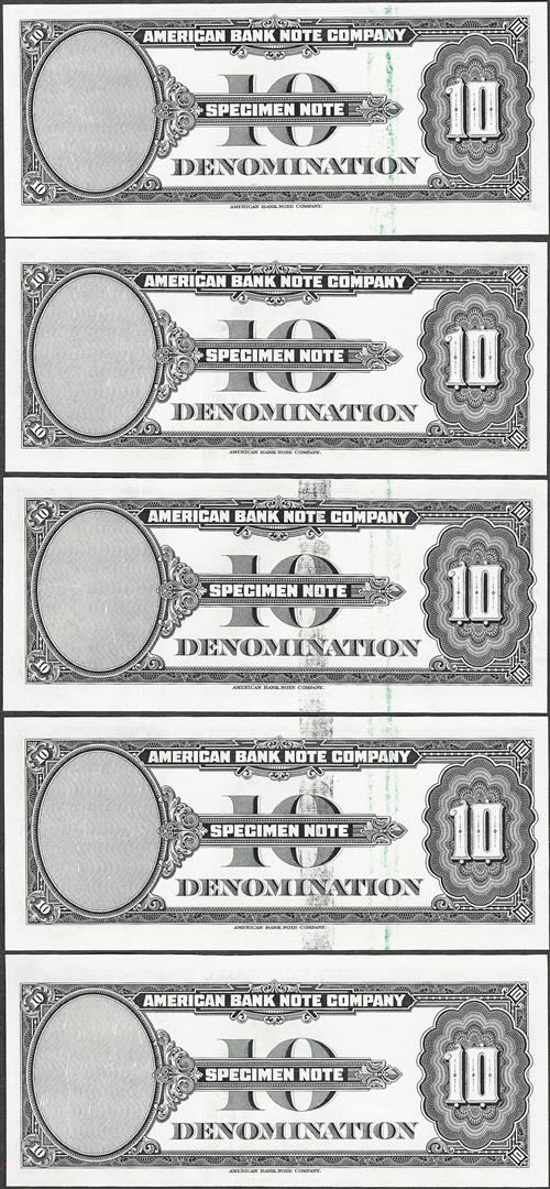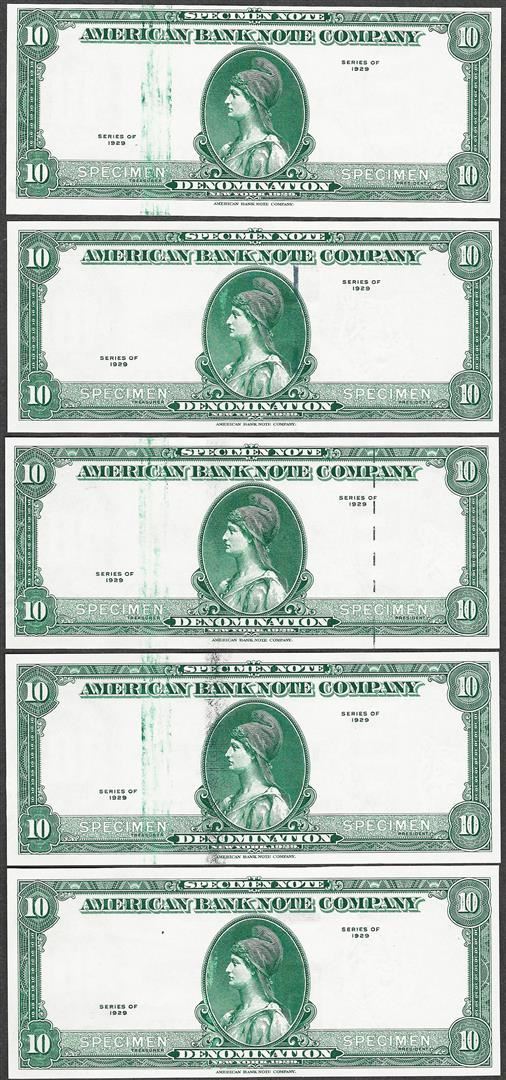 Lot of (5) Different 1929 Ten Unit American Bank Note Company Test Notes