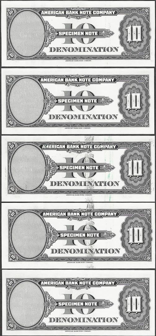 Lot of (5) Different 1929 Ten Unit American Bank Note Company Test Notes