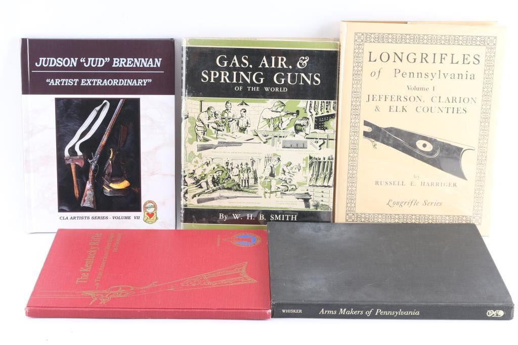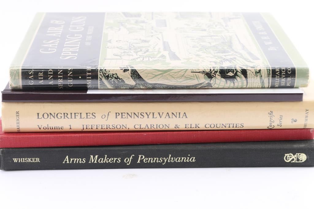 Includes: Arms Makers of Pennsylvania by James B. Whisker; The Kentucky Rifle...a True American Heritage in Picture by the Kentucky Rifle Association; Longrifles of Pennsylvania Vol. I (1st Ed.) by Russell E. Harriger; Contemporary Longrifle Association Vol. 7, Judson "Jud" Brennan; Gas, Air & Spring Guns of the World by W.H.B. Smith.
