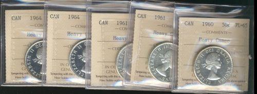Lot of 5 ICCS PL65 HEAVY CAMEO graded coins. Includes a 1960, 1961 (2), 1964 (2). All pieces are brilliant.