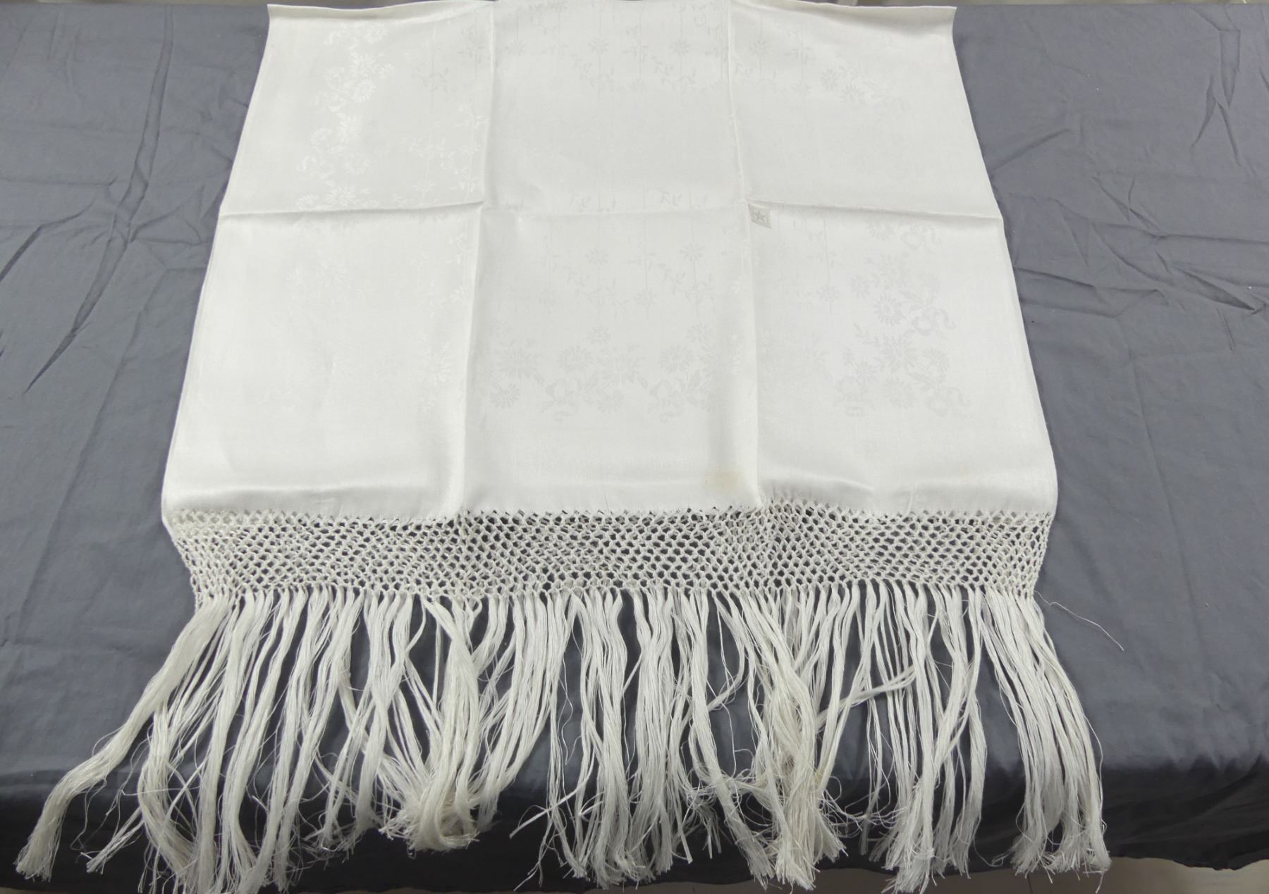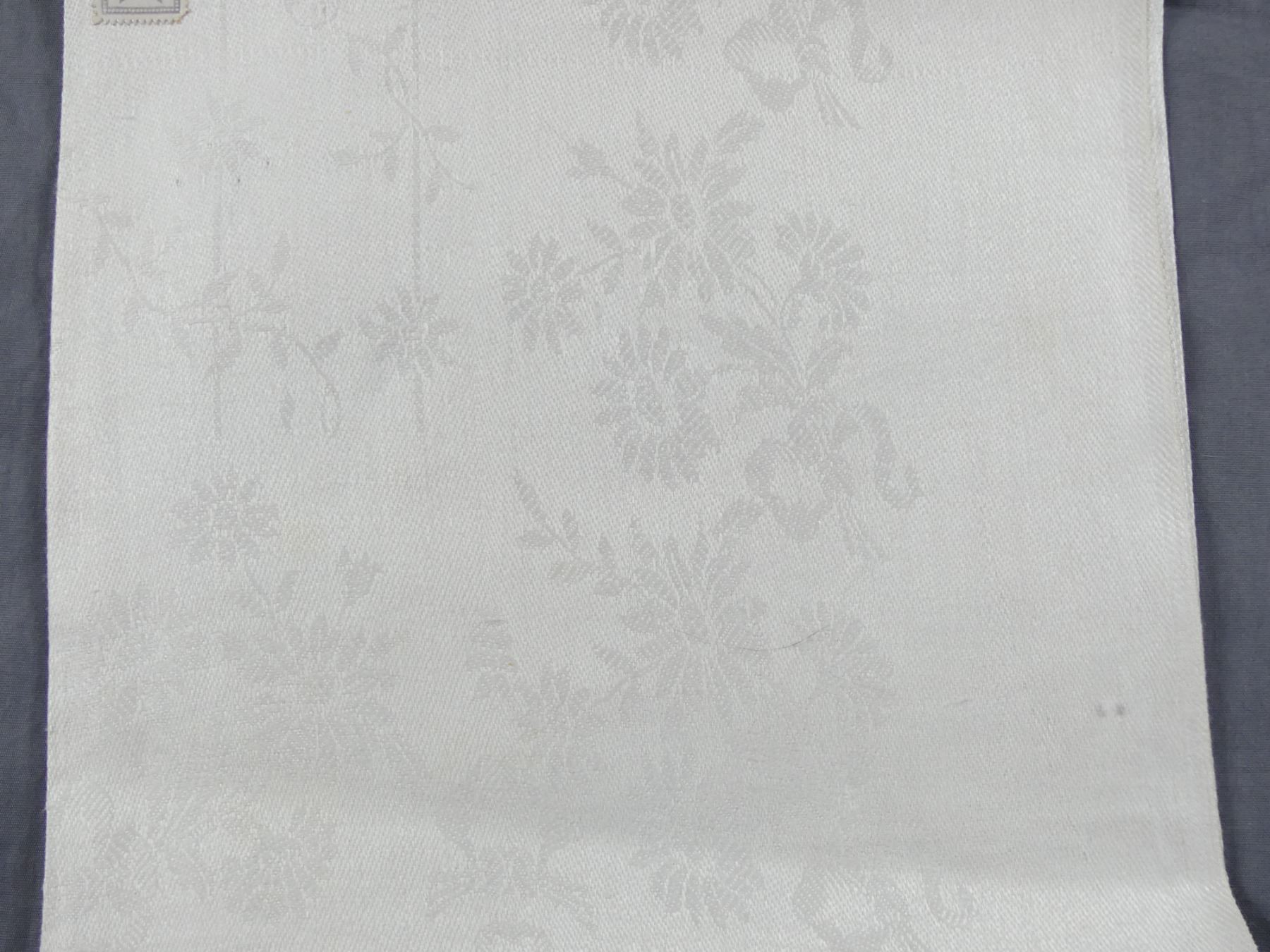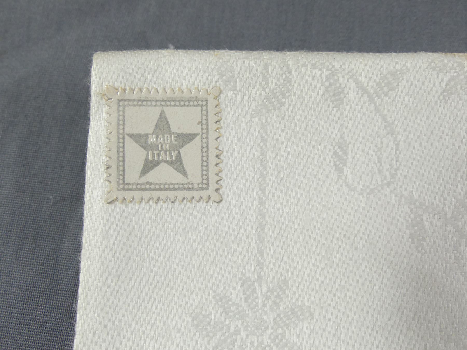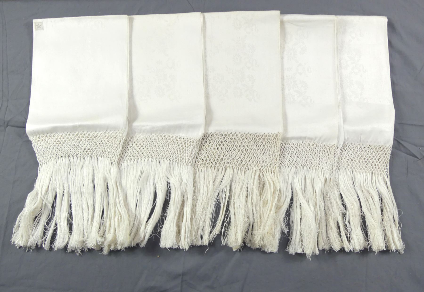 Lot of 5 Italian Damask Linen Fringed Towels, Old Store Stock