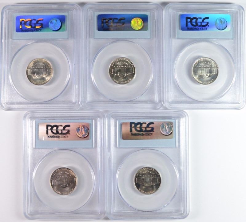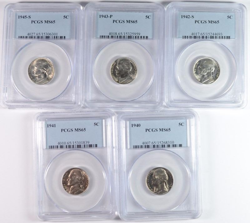 Lot of 5 - Jefferson Nickels PCGS-MS-65 '40, '41, '42-S, '43-P, '45-S