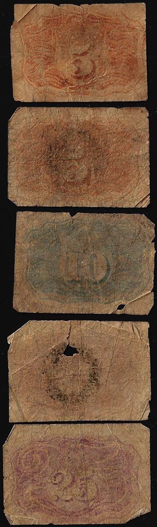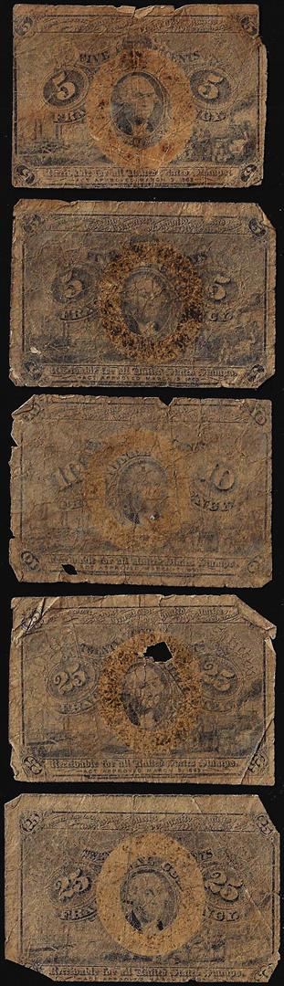 Lot of (5) March 3, 1863 Second Issue Fractional Currency Notes