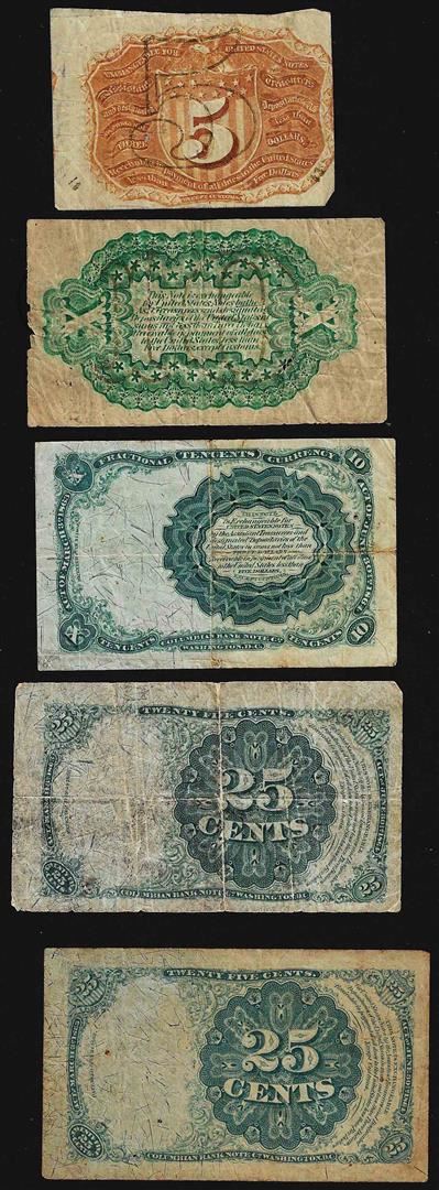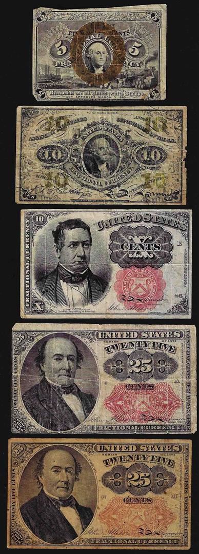 One Lot of (5) Miscellaneous Fractional Currency Notes.