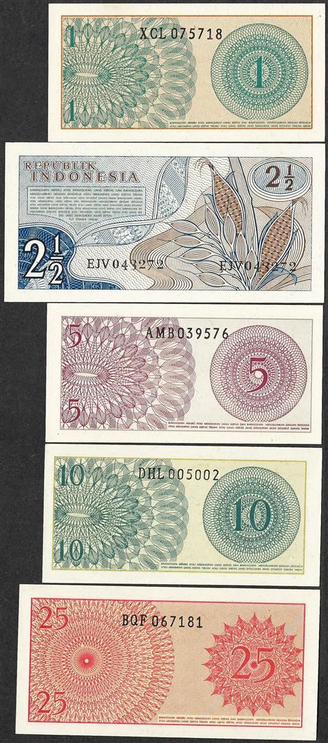 One Lot of (5) Miscellaneous Indonesian Currency Notes.