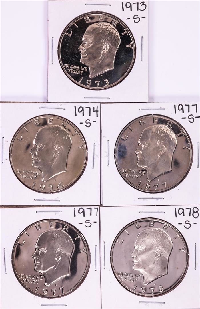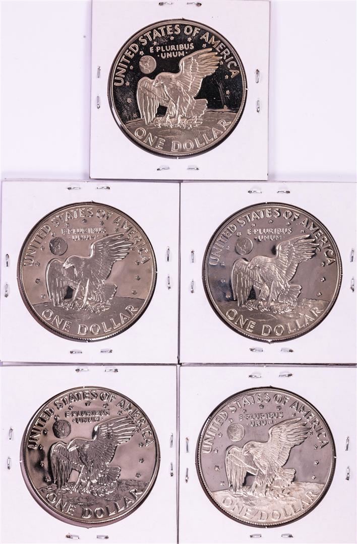 One Lot of (5) Mixed Date $1 Eisenhower Clad Coins.