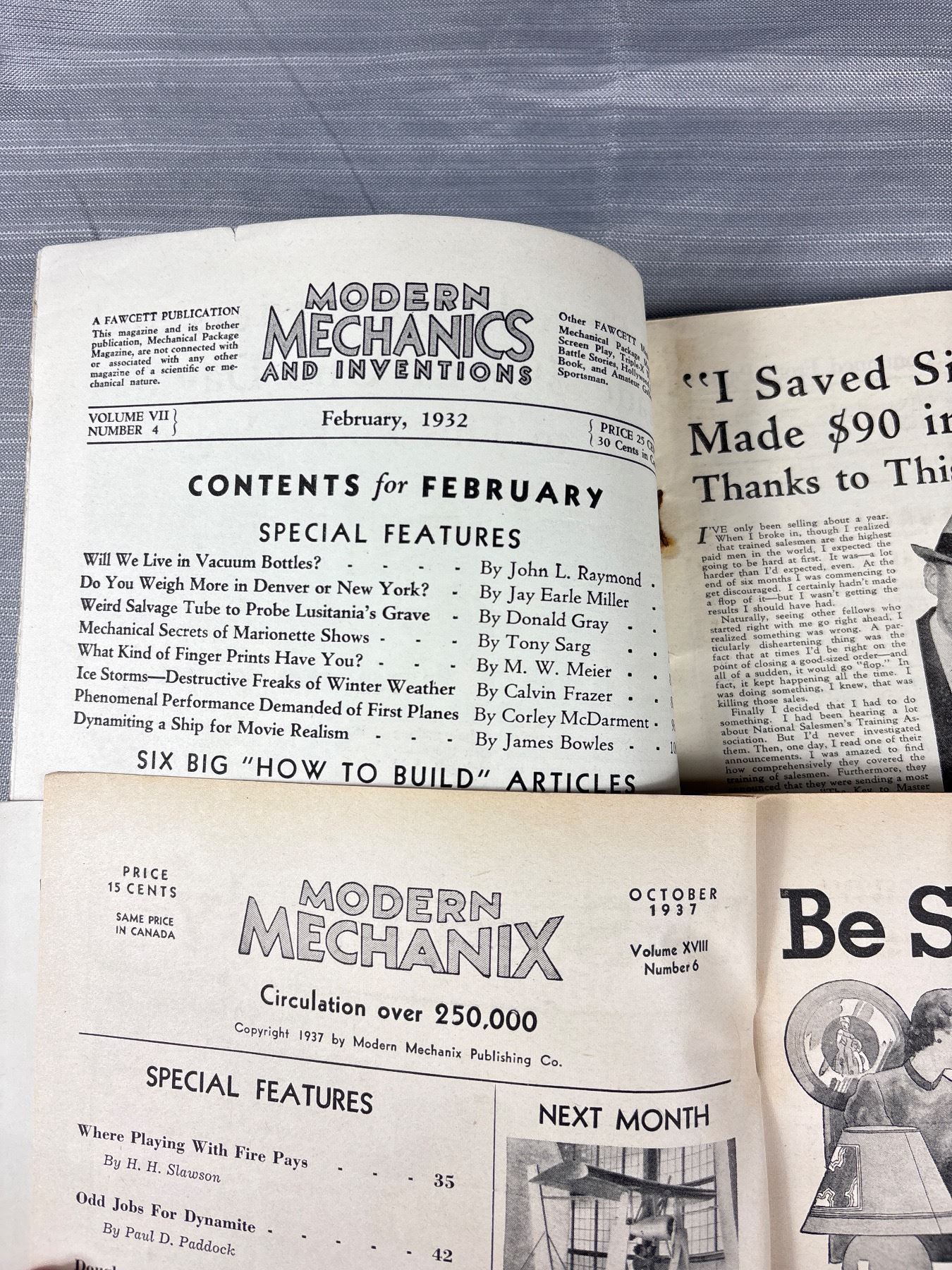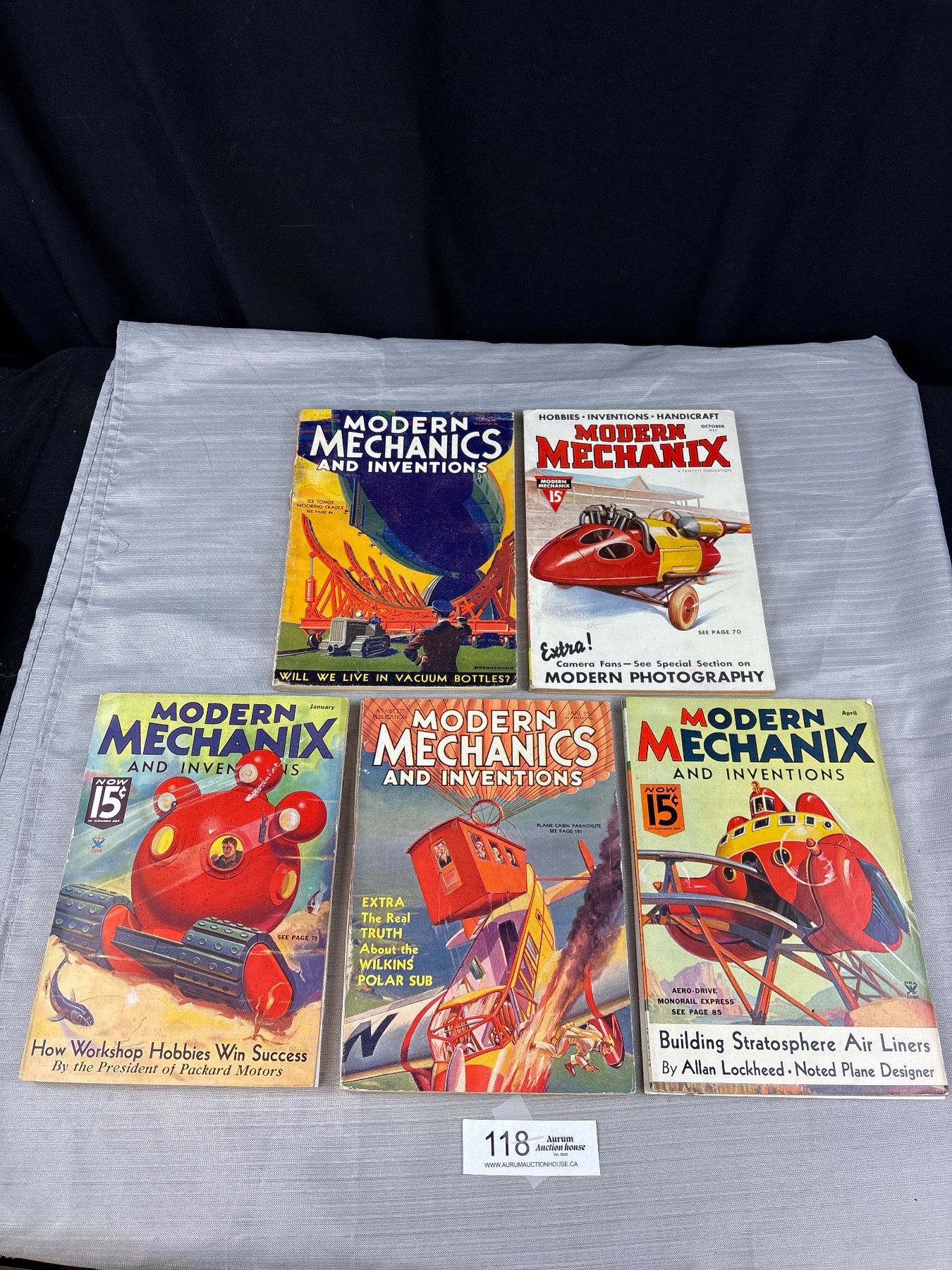 Lot of 5 Modern Mechanix Magazines from 1930s Great Graphics
