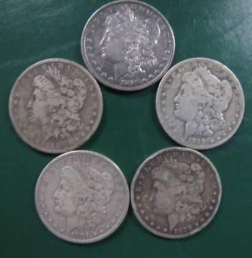 A lot of 5 random date morgans- 1878-1921 various dates and mints. All items are ag-au grades. Please review the bidding and payment procedure. Your bid is a contract and promise to pay within our parameters. We offer easy payment options,with a self click payment applet. We also accept checks, money order and bank transfer. Payment is due within 5 days of invoice. We conduct our auctions pursuant to all Governmental, State , County and City laws and codes. We are members of the NAA and use the professional code of ethics for our sales. We expect you to honor your purchase and bids. All of our lots are US Asset Forfeiture & Seizures Acquisitions. Fresh to the market items, non auction circuit merchandise.Investment opportunity- Please view our website for future sales, buy it now items, feedback, questions, weekly tidbits on collecting, to consign or just to learn a bit about us. Visit us at www.afsauctions.us